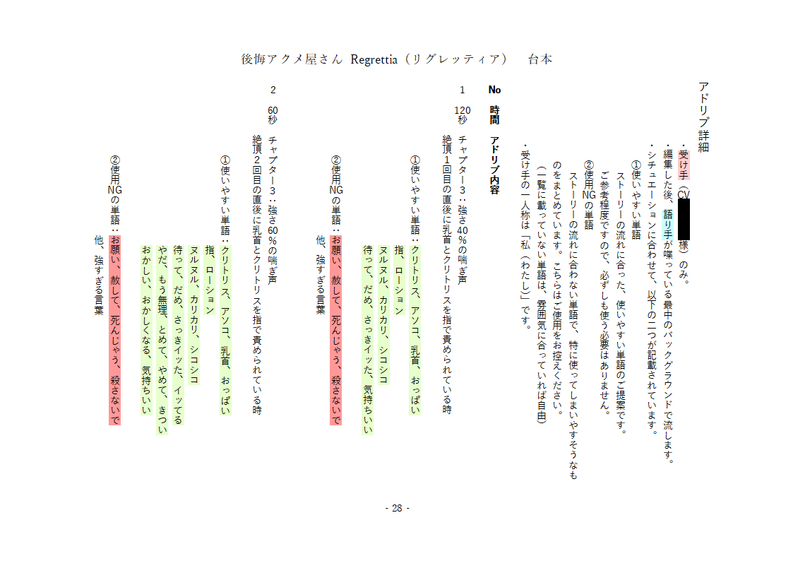 - 完成した台本が思ってたのと違ったとしても、修正などは原則いたしません。そういうのは正式なご依頼を。